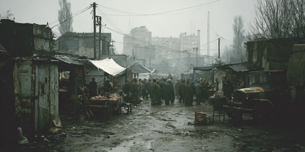 坐落在华沙南缘的辐射区边界。窝棚林立、泥泞遍地,雾气与叫卖声交织在破烂帆布下,从药品到军火、奴隶到野狗,只有你想不到的,没有不卖的。